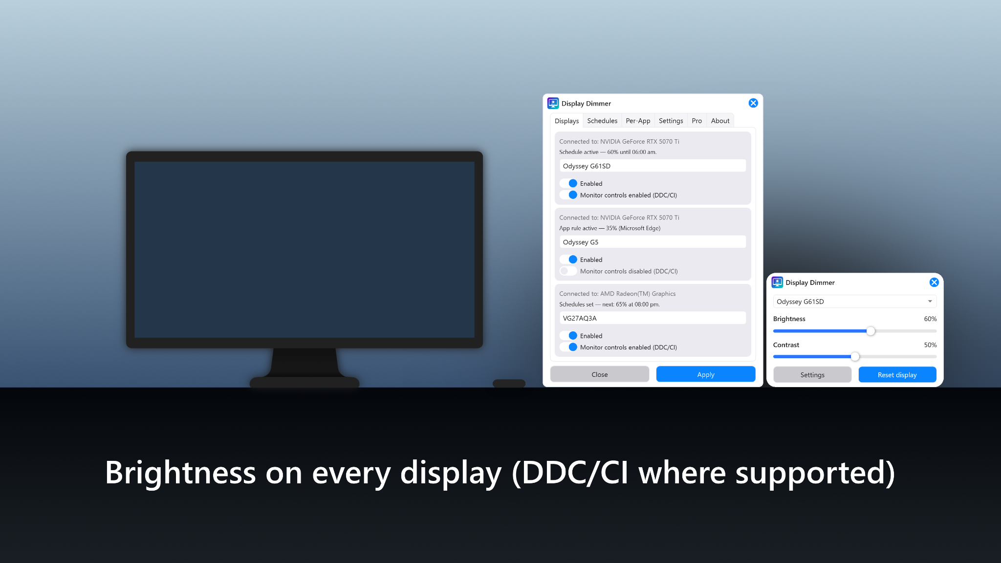 • GPU dimming fallback provides a safe alternative for monitors that don’t behave well with DDC/CI.