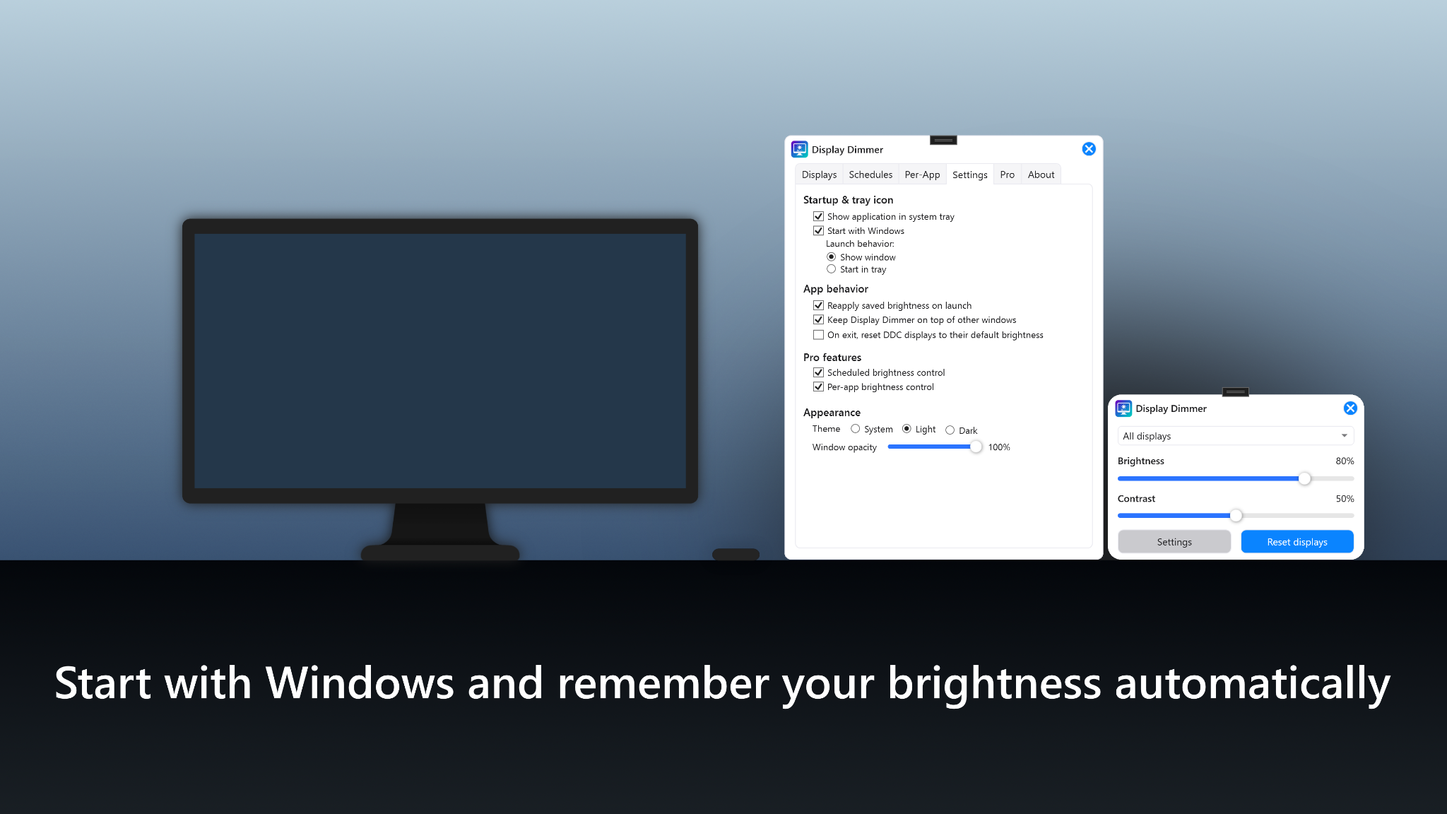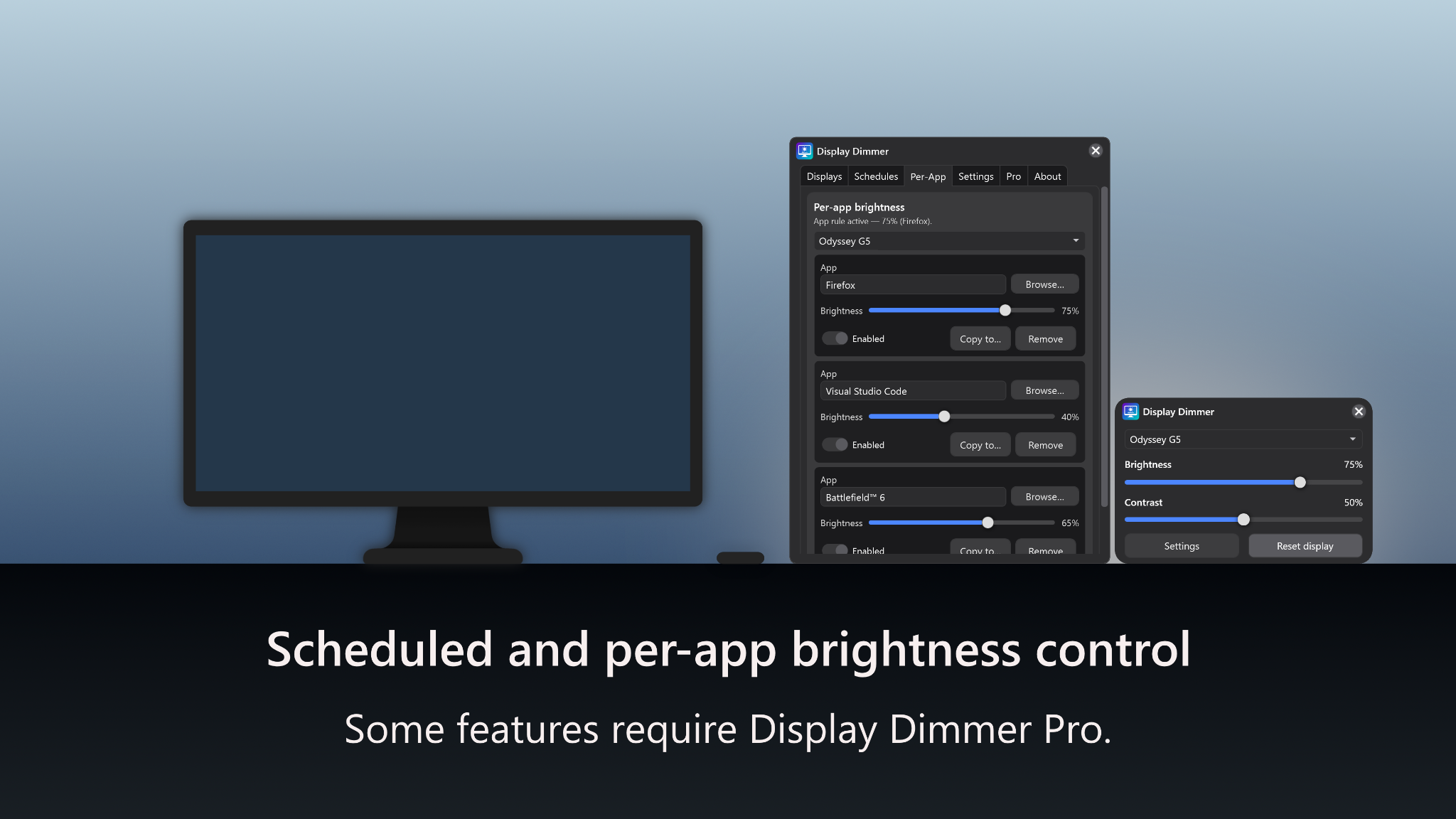 Set time‑of‑day brightness schedules and per‑app rules so your screens adjust automatically.